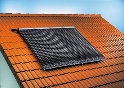 Warmwasser-Kollektoren absorbieren die thermische Energie der Sonnenstrahlung! Hier: Vakuumröhrenkollektoren. © Junkers Bosch Thermotechnik GmbH. Alle Rechte vorbehalten